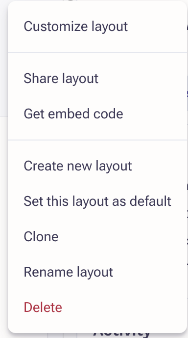 - Select Customize Layout.Note: If you don't have the option to edit, clone the layout and set it as default, then try again. If the issue persists, contact your Outreach Admin.