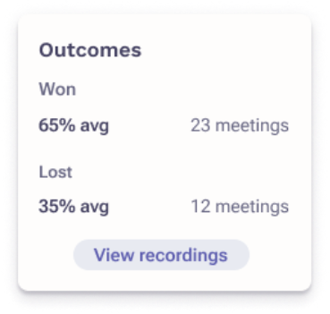 Win rate Defined as total closed won opportunities associated with Kaia meetings, where the topic is mentioned, divided by total closed opportunities associated with Kaia meetings.