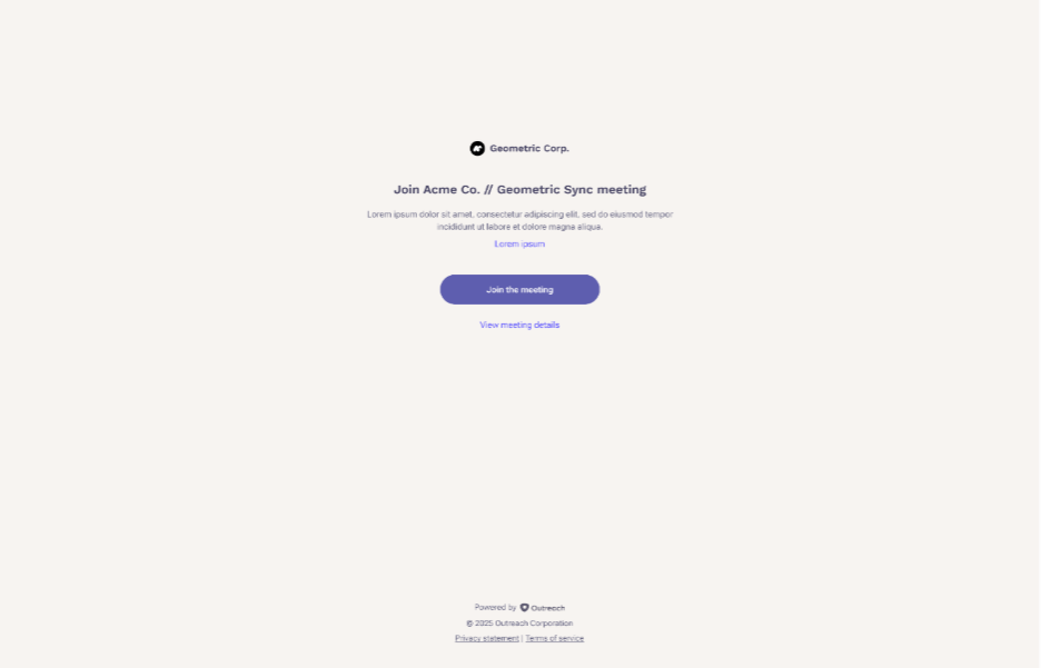 When checked, this will replace the default meeting join link with a new one to a web page hosted by Outreach before attendees can join.