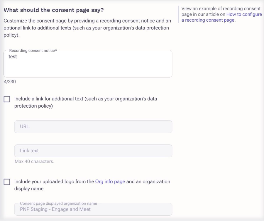 A: This feature only affects new meetings that are scheduled after the feature is enabled. For any existing meetings, including recurring ones, you may wish to reschedule so that the consent enabled link can be used.