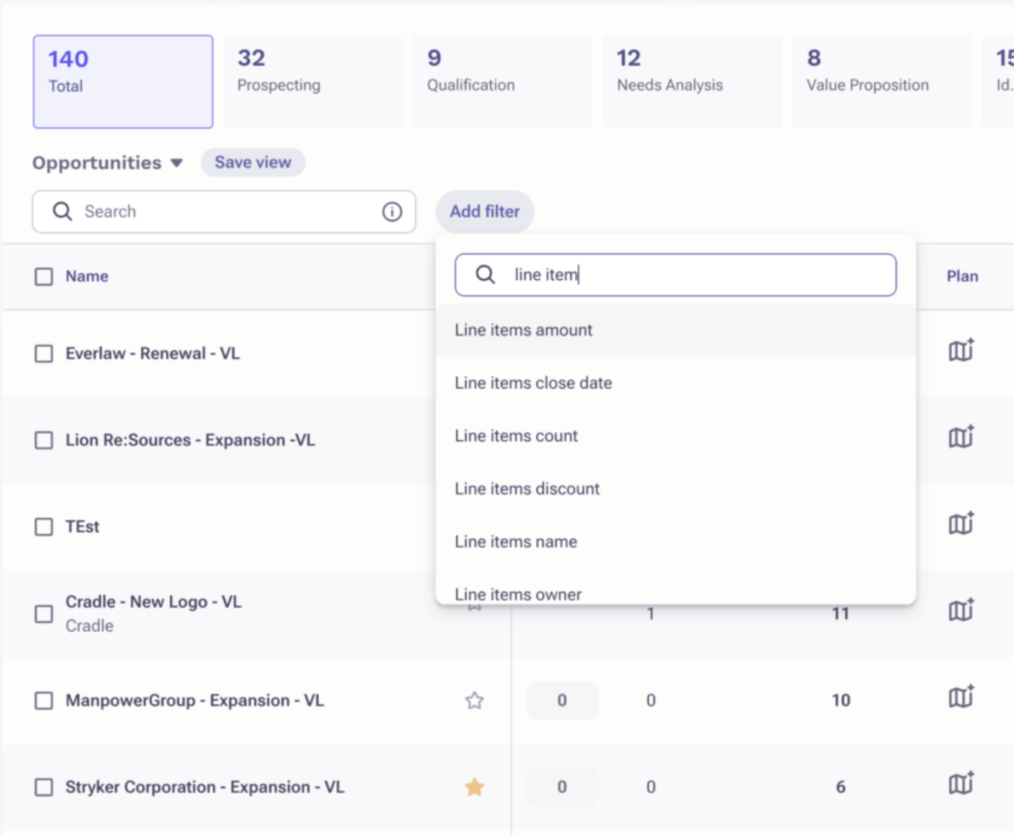 2. The Opportunity list view now supports filters based on Line Item attributes including: