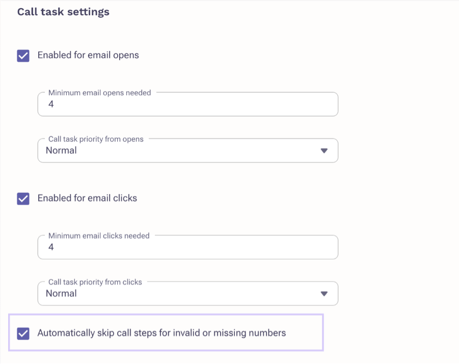 Once saved, Outreach will now evaluate call and SMS tasks for phone number validity during execution for prospects enrolled in that Sequence.