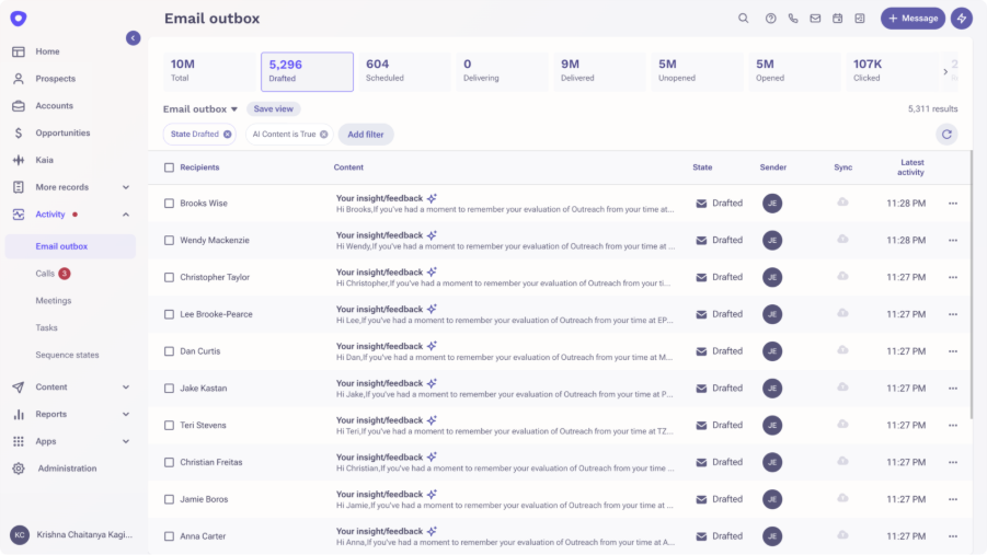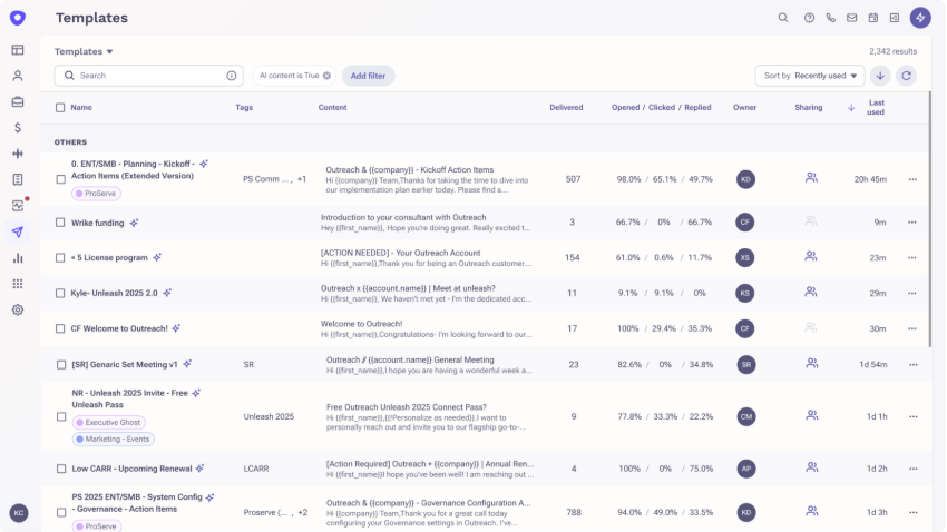 - Analyze results across Sequence/Template lists, the Email Outbox, and email performance dashboards.