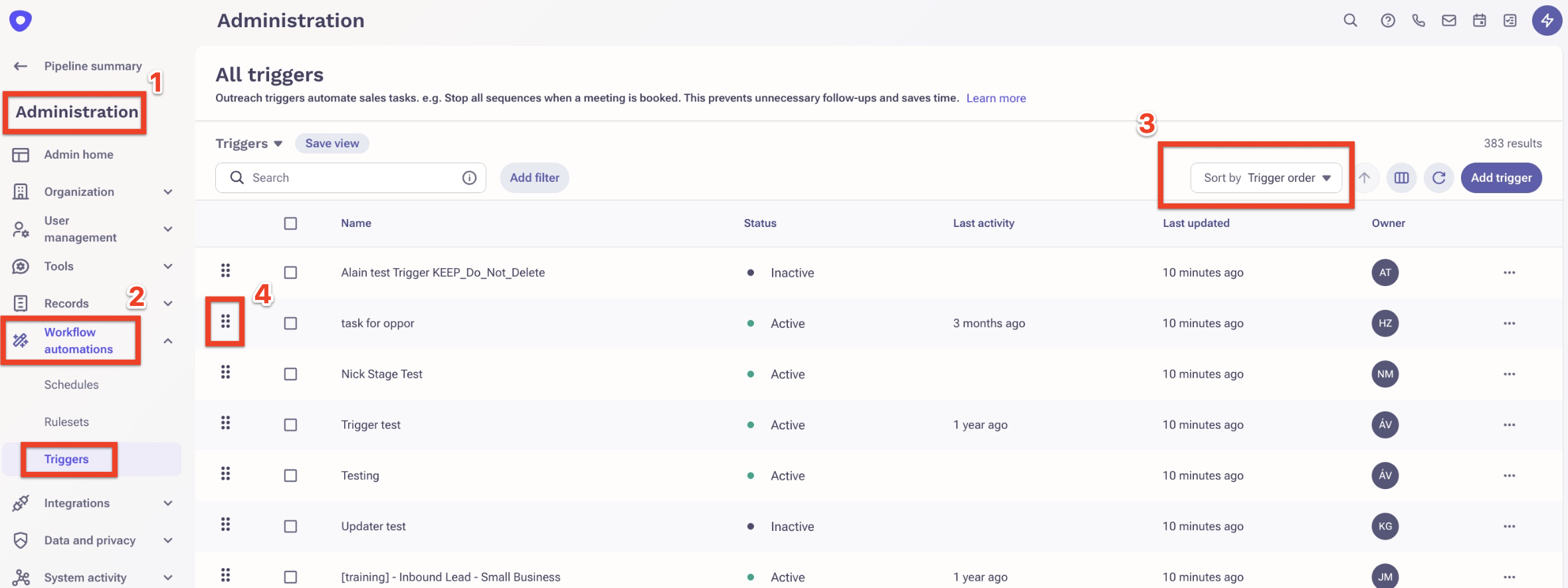 3 - On the triggers page, sort by Trigger order