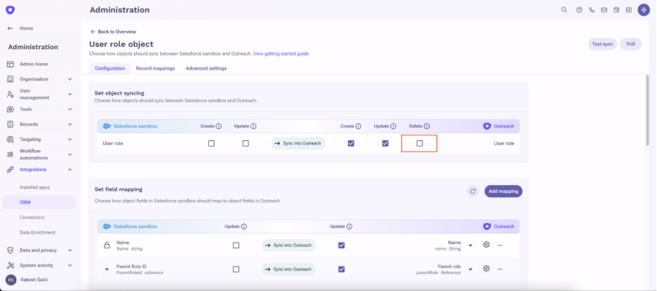 The purpose of this article is to provide directions to Outreach Admins in configuring CRM sync to delete records in Outreach when the mapped records are deleted in the CRM. The Delete Polling for all Objects feature provides a benefit to Outreach Users by keeping their Outreach records in lock step with their CRM.
