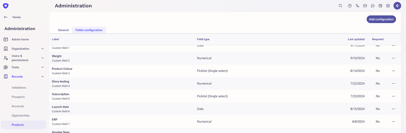 - Define the label and specify the field type (e.g., Text, Number, Percentage) for the custom field.