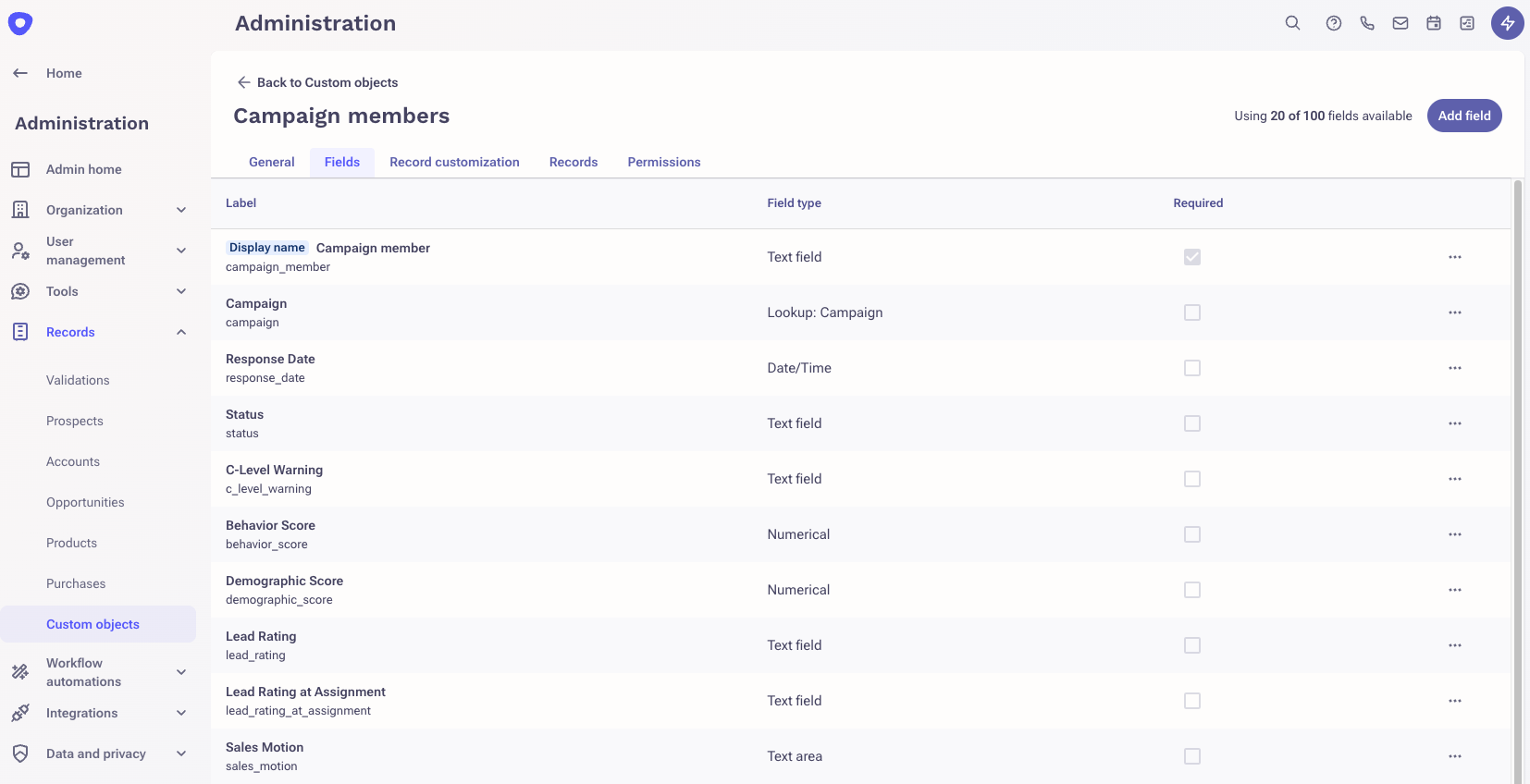 To verify, go to Administration > Records > Custom Objects > Campaign Member and open the Records tab to confirm the record was successfully created in Outreach.