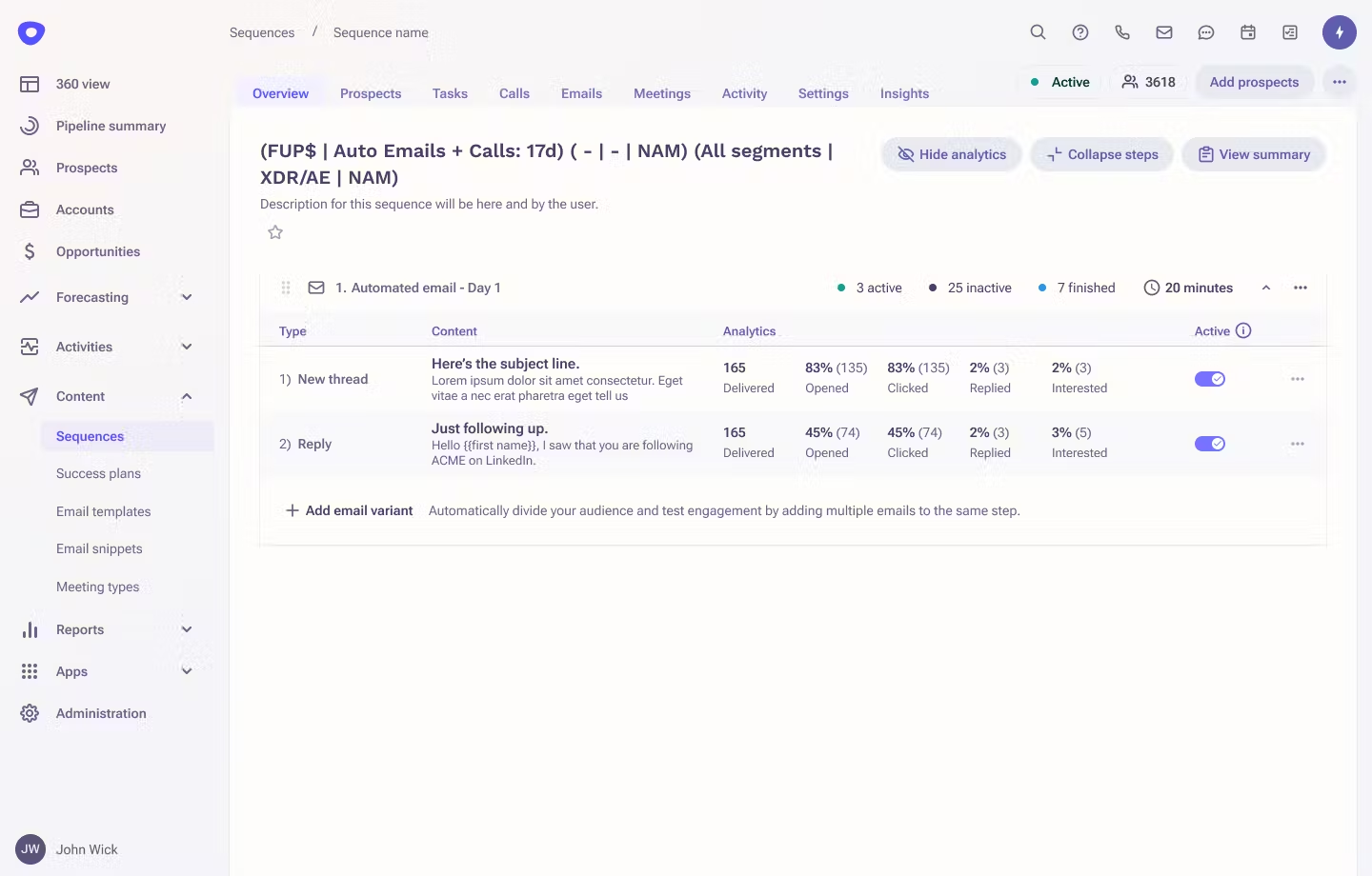 Within the overview tab of an individual sequence, each step now displays a metric to indicate the interest in that individual step.