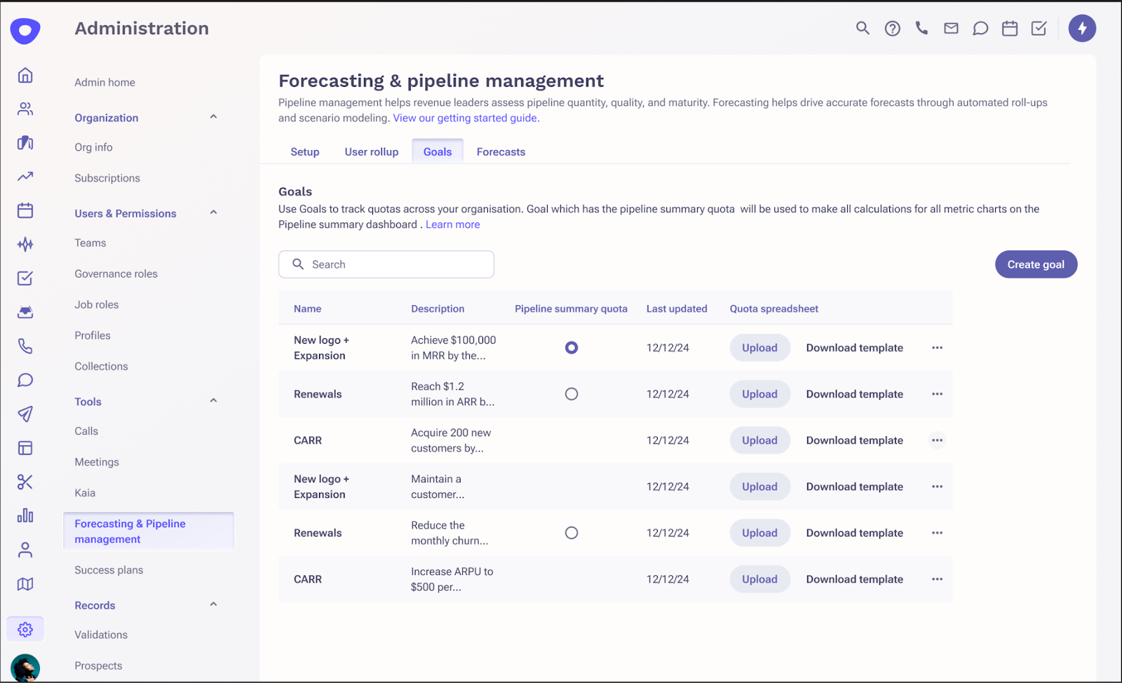 Upload multiple goals to gain visibility across your business.