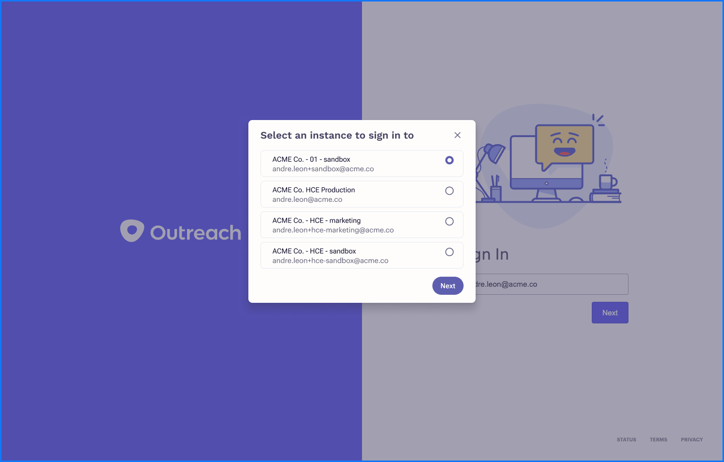Login to multiple Outreach instances with a single email address.