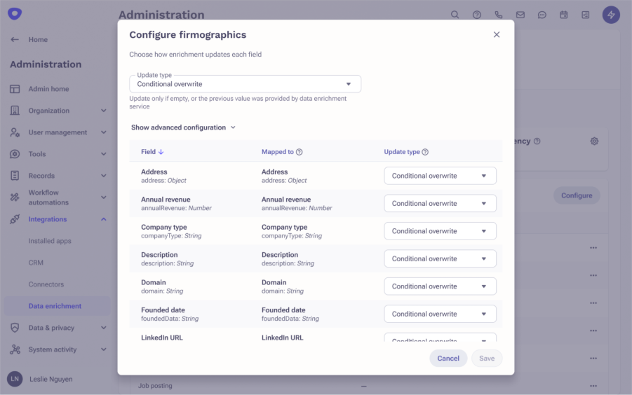 With Smart Data Enrichment, Admins can connect providers, define enrichment logic, and manage how data is updated, ensuring your team works with accurate and actionable records.