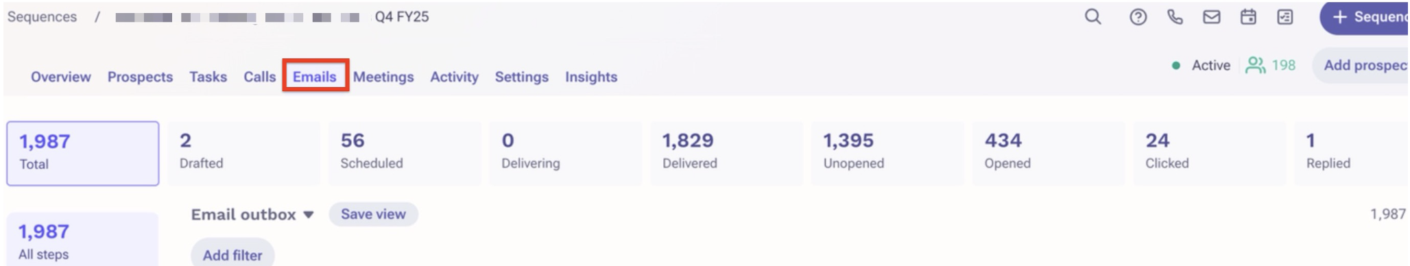 Whatever we see in the Email tab under any sequence we are not showing anywhere. In the screenshot below, these are email metrics; we are not showing these things in the list view screen. Please take a look at the screenshot here.