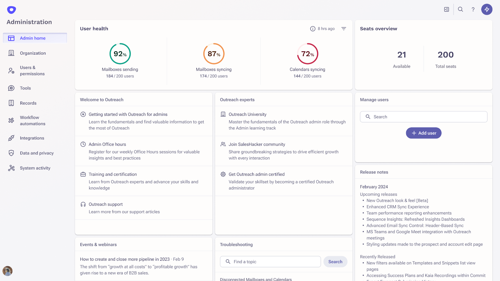 Get an immediate pulse check on Outreach performance with the New Admin Health Dashboard