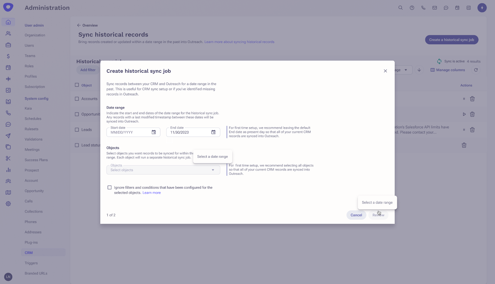 Historical Data Loader helps Outreach admins easily import CRM data with just one click. This new feature removes the manual export and import of CRM records into Outreach.