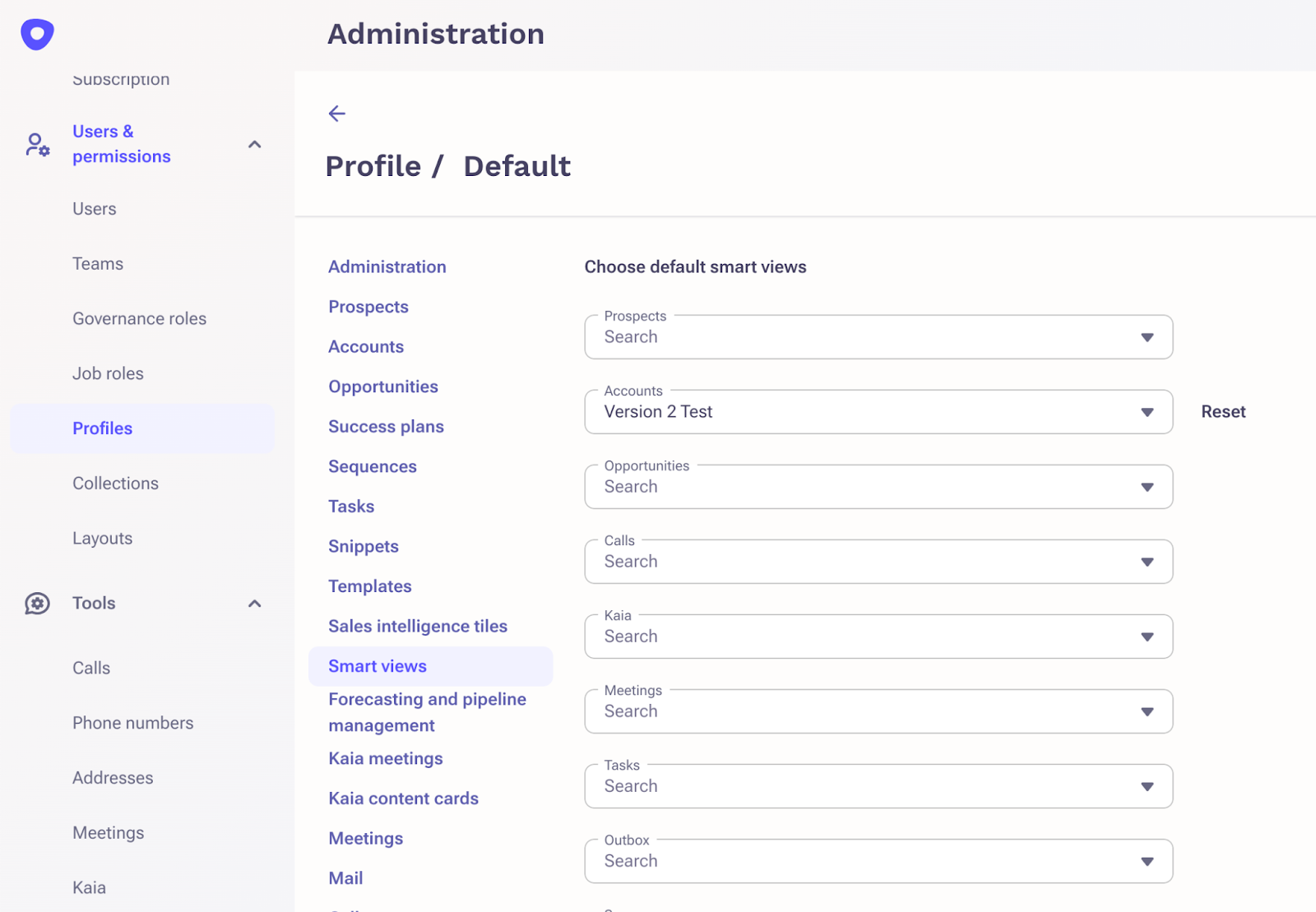 This new capability, Outreach Admins can now modify a user’s SmartView setting as needed to help provide guidance on workflows, improve onboarding, and more. This specific view set up by the Outreach Admin, will be the default view that users see when using Outreach.