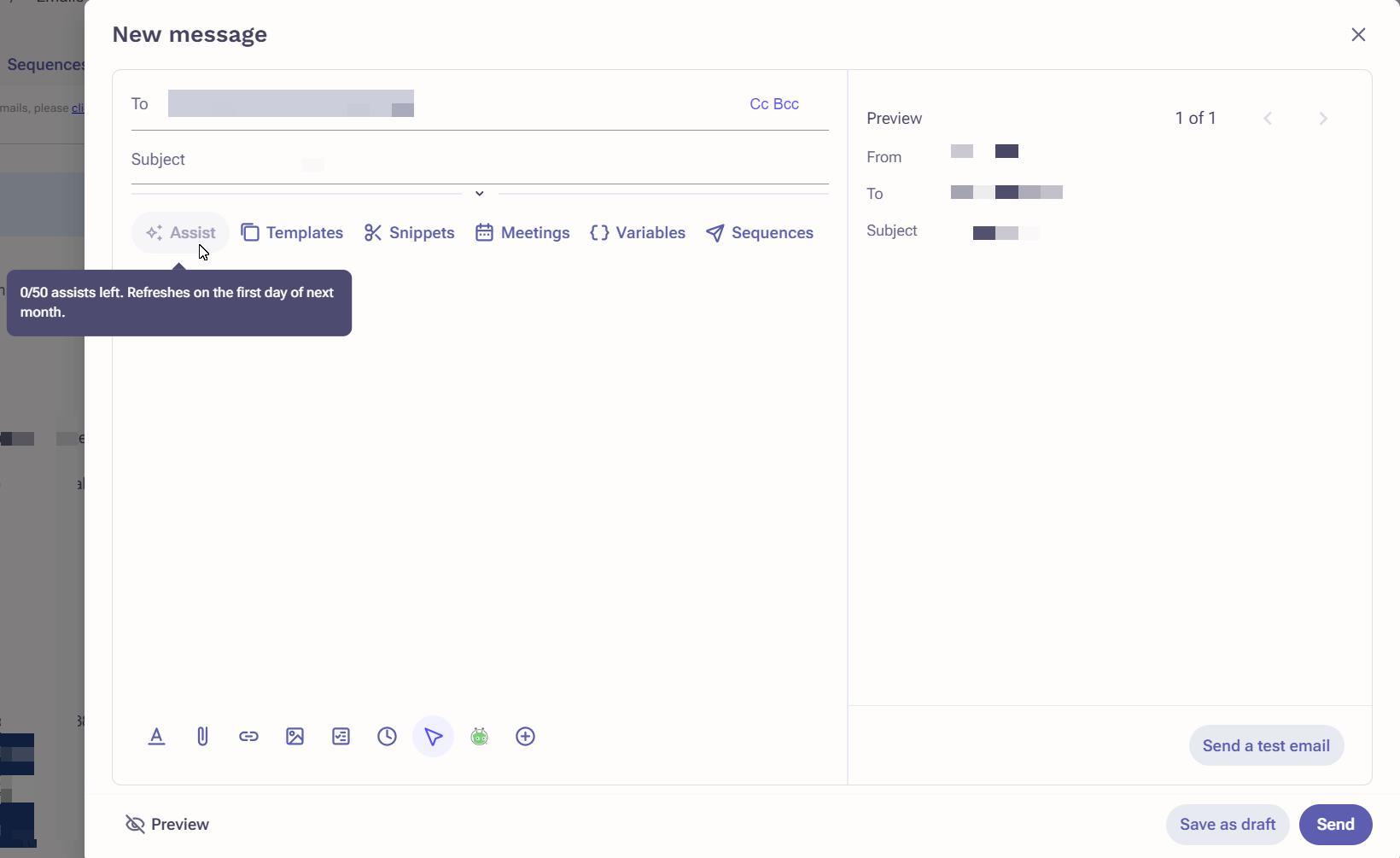 Users are encountering a message stating that they have 0 email assists left.