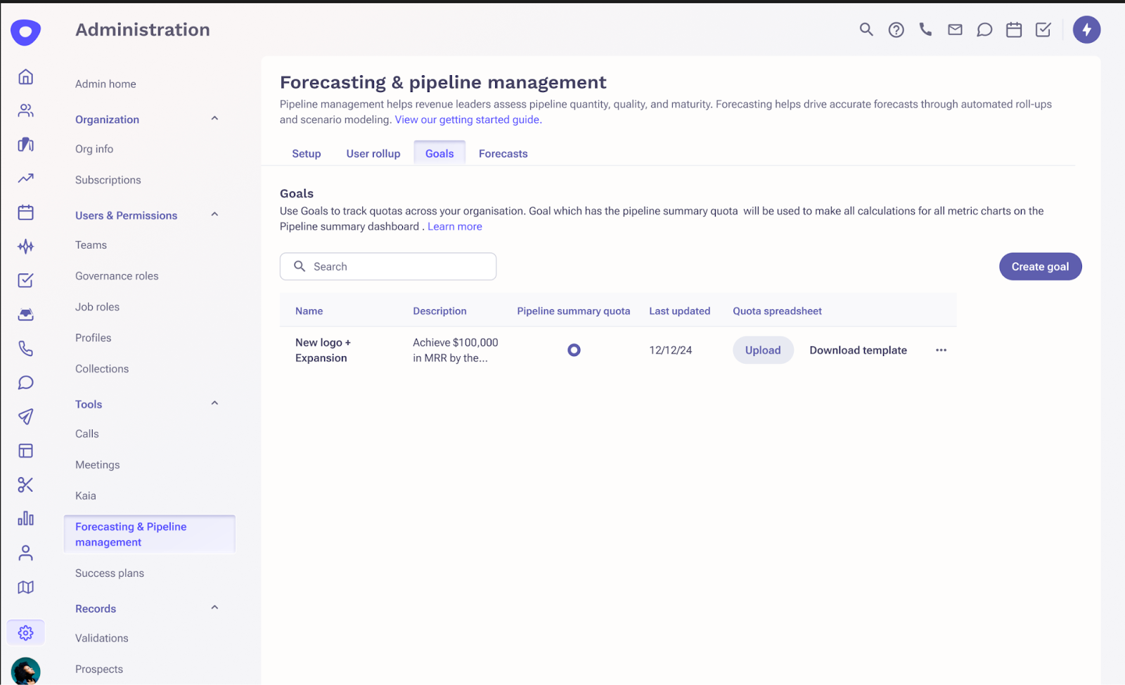 You can select a goal which you want to use as your quota for the pipeline summary page. This goal will be used to make all calculations for relevant metric charts on the Pipeline Summary dashboard.