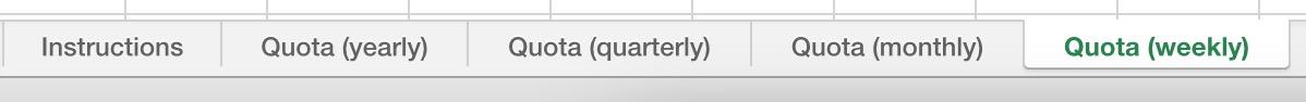 Outreach recommends that you fill out the tab that aligns with your organization’s sales period length, as only one sheet can be filled out.