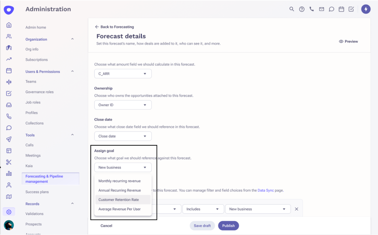Once the quota is linked, all the metrics defined in that forecast will be tracked against the linked quota.