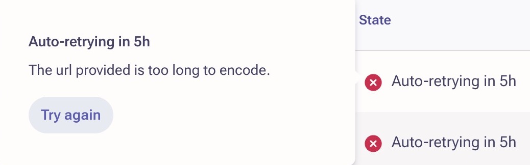 Email failed with error: "The url provided is too long to encode"