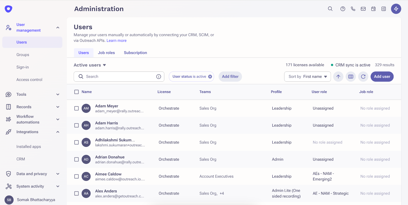 Outreach provides robust integration tools that you can use to manage users fully automatically. Check out our CRM, SCIM and APIs to understand how you can set up automatic management.