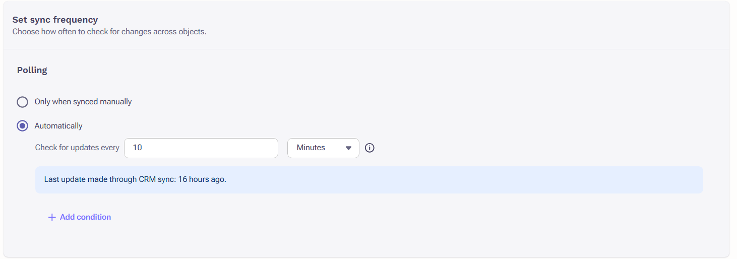 - The Opportunity Object & Opportunity Stakeholder Role should have a Polling Frequency of once a day at a minimum (every 10 minutes is the default)