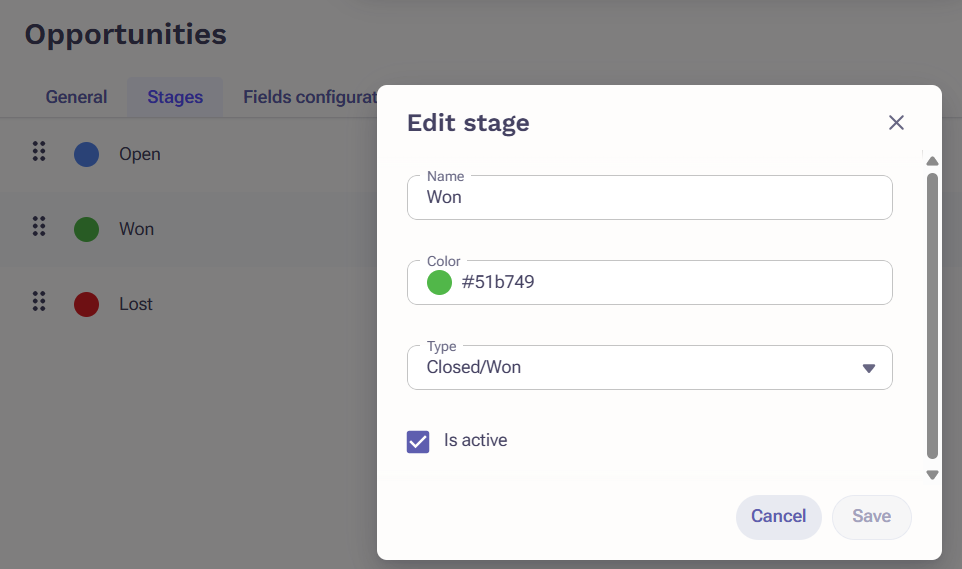 Opportunity Stage Settings