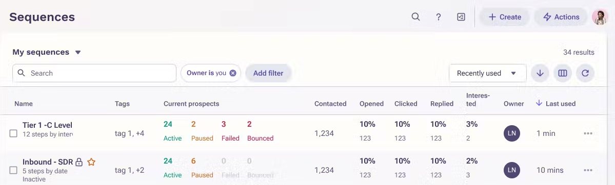The Interested metric provides a clear indication of how well sequences and individual email variants are performing in terms of generating positive engagement and interest from prospects.