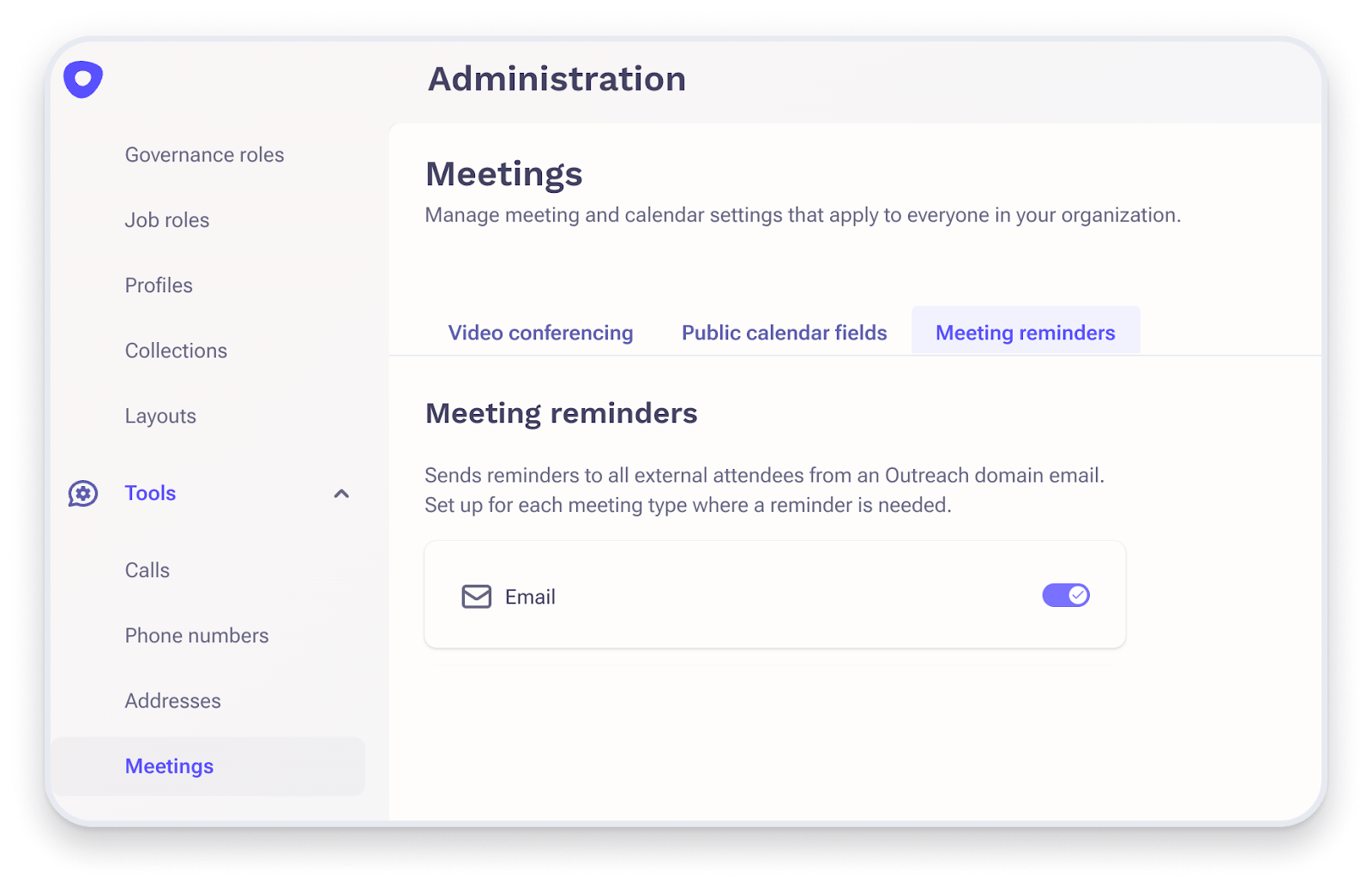- Click Administration > Meetings > Meeting reminders