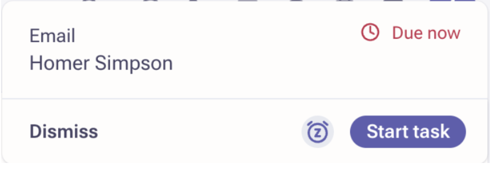 If a user has selected to receive in-app notifications the notifications will show up within the Outreach web app and Outreach Everywhere extension when an urgent task is due. Users can choose to dismiss the notification, reschedule, or start the task.