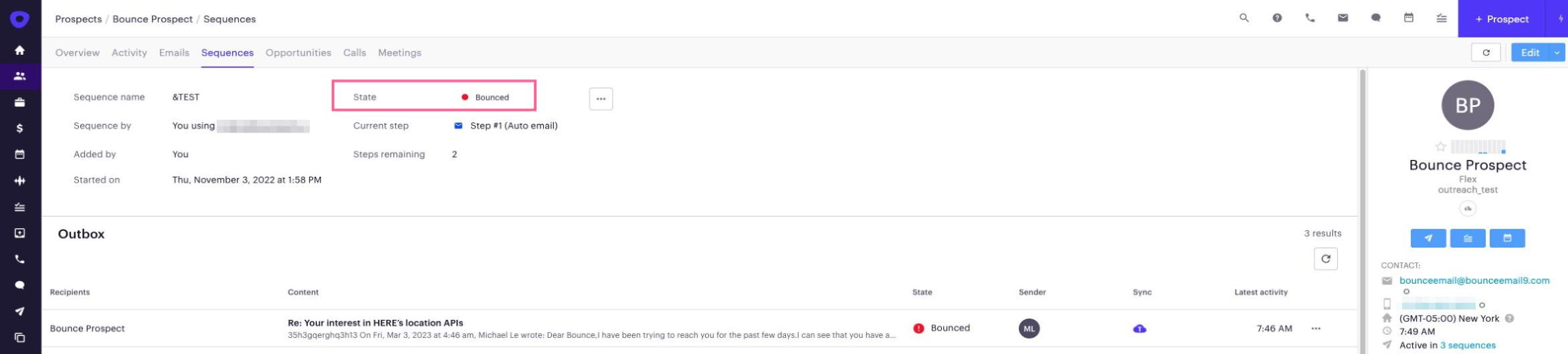 • How is the Bounced state calculated on the Sequence reporting's Prospects tab?