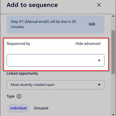7. Complete configuring the sequence as applicable in the rest of the Add to sequence window.