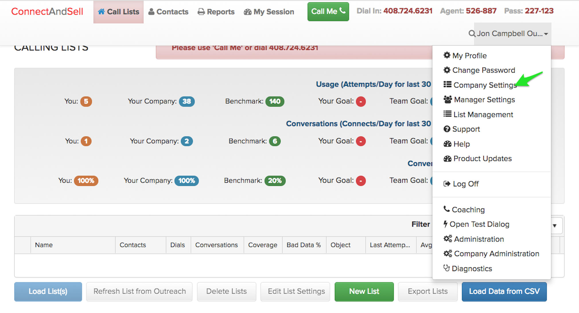 - Load the Test Call List and Verify Data Flow between Outreach and ConnectAndSell