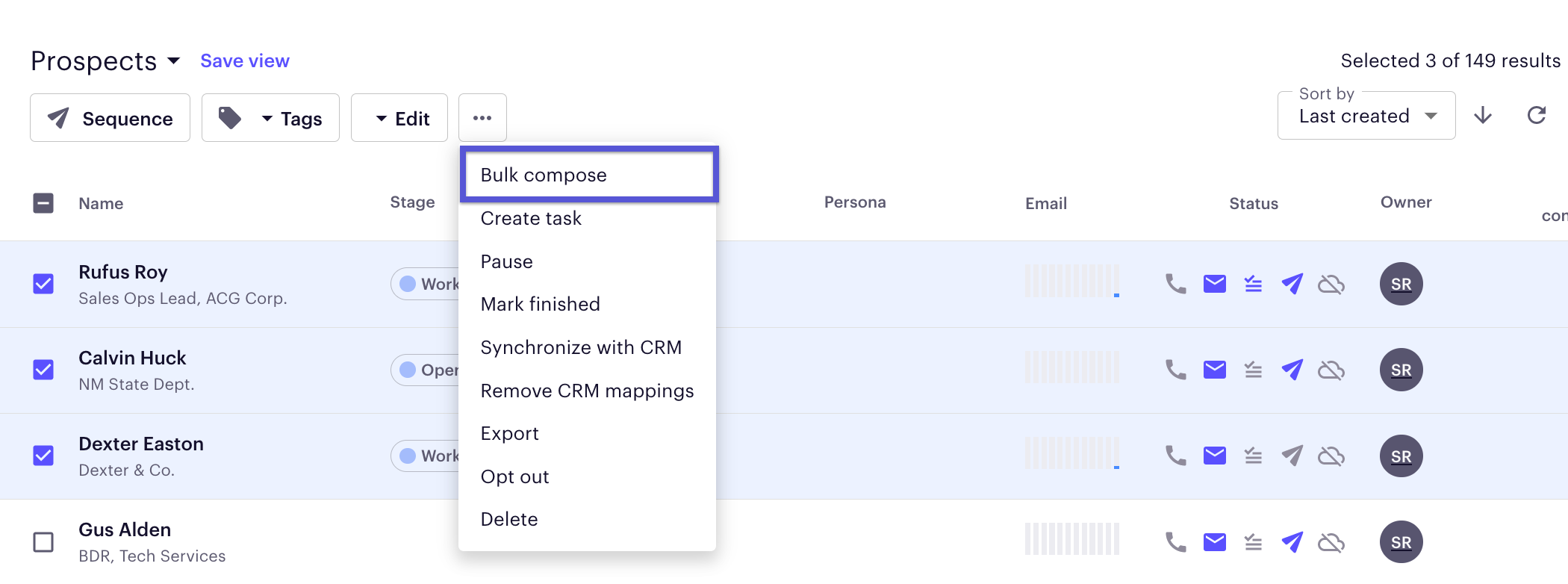 Bulk compose emails are a single, one-time email that is personalized with variables and delivered to multiple prospects.