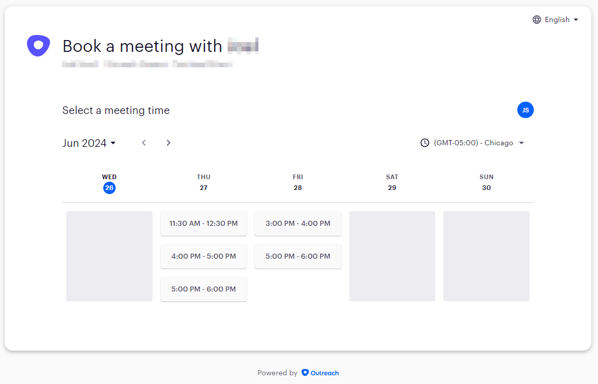 *A note on time zone display: When a Prospect schedules a meeting via the public calendar link, the calendar displays the time zone as set by the Prospect's browser. E.g., if the Prospect is in Seattle, WA (USA), it will display times in PST/PDT.