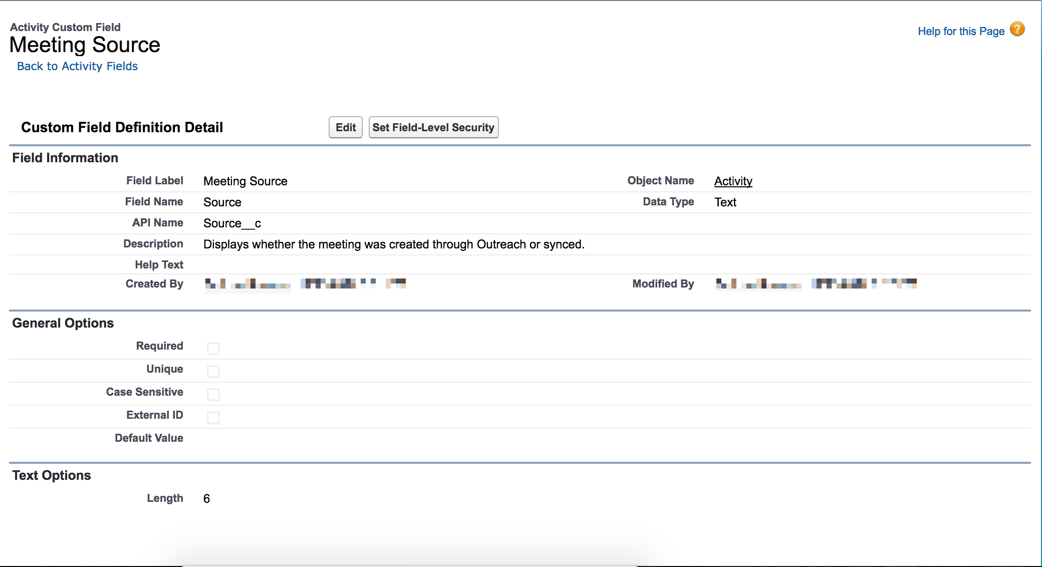 - Create a custom text field (with a field length of six characters) related to the Source object on the Activity Object.