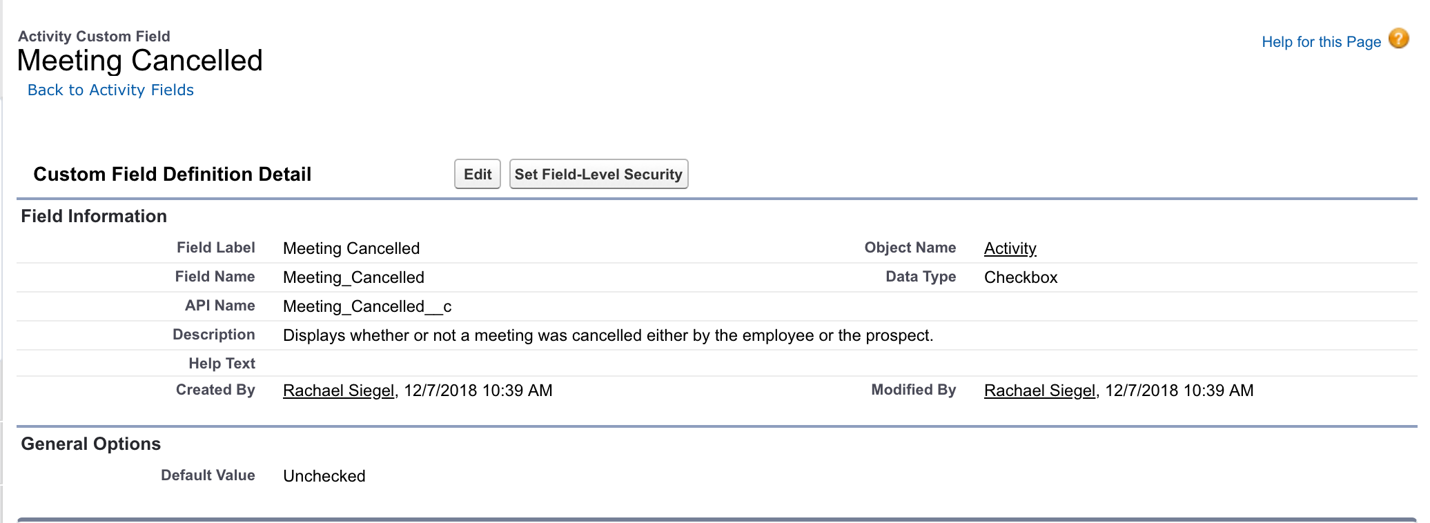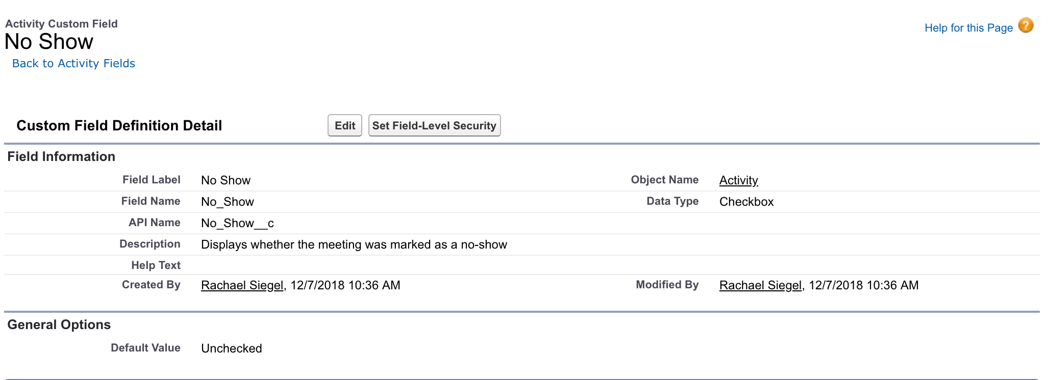 - Create a checkbox field on the Activity Object.