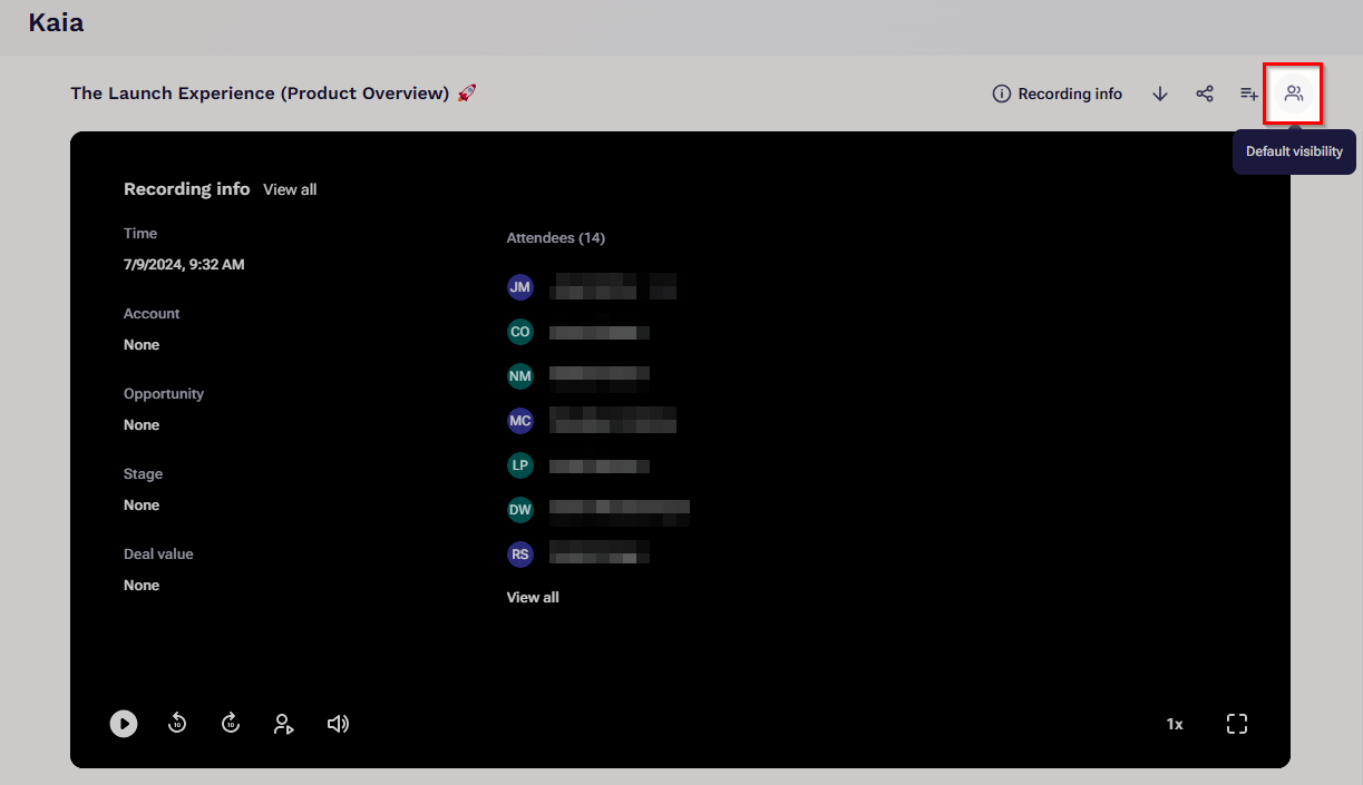 • Outreach Admins can view Kaia recordings regardless of a recording's visibility settings.