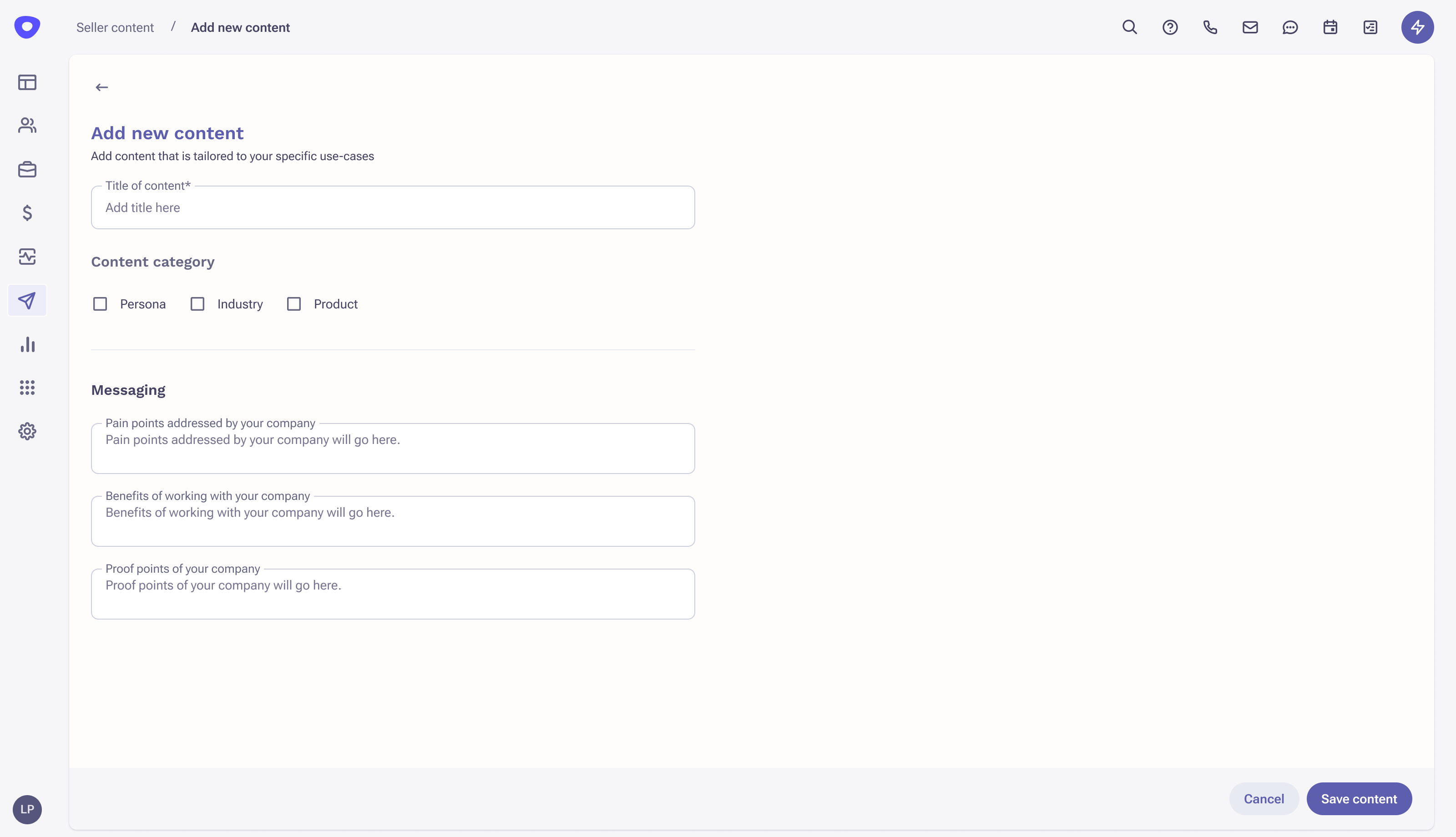 Provide your core go-to-market messaging for specific personas, industries and products to help power your AI-content.