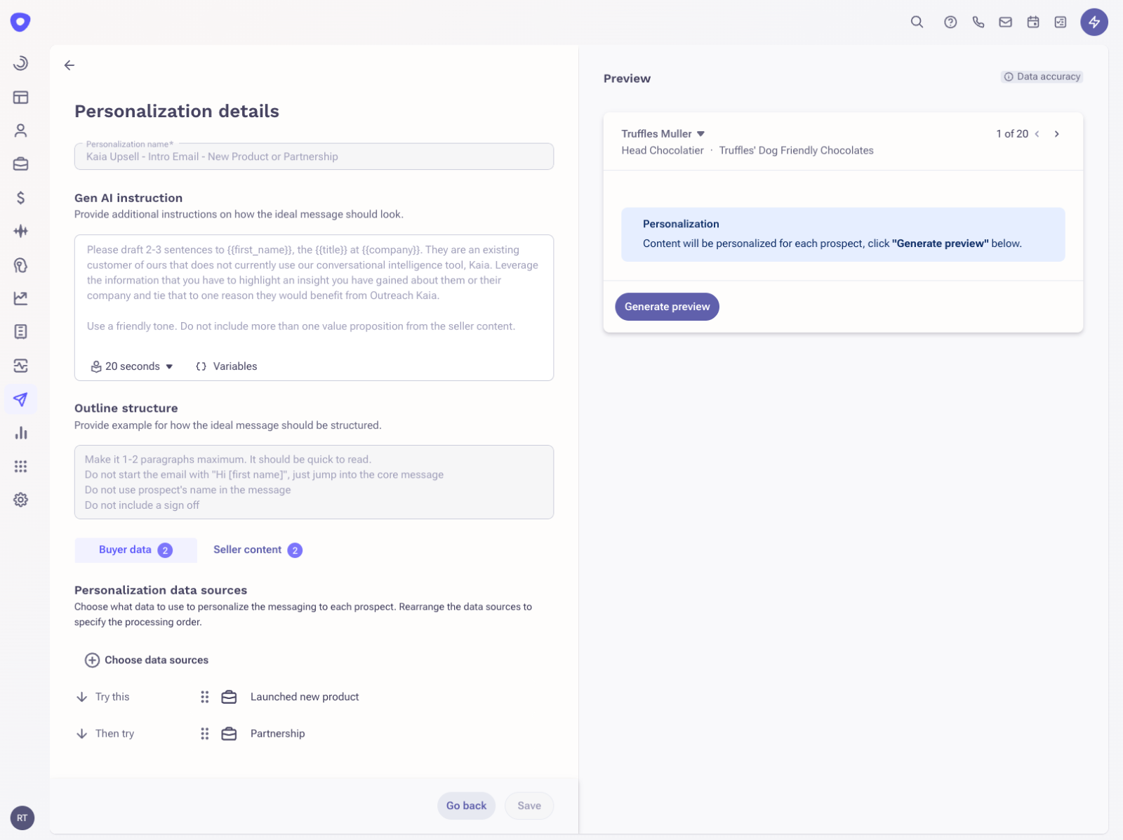 Combine first and third-party data with seller content to create AI-personalized content that can be used in your sales emails.