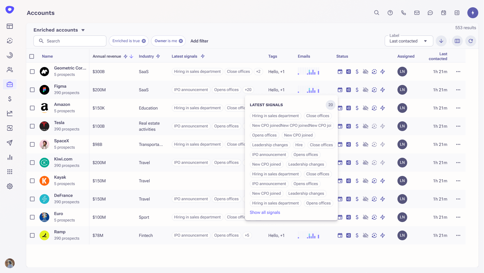 Signal-Based Selling with Account and Prospect Enrichment