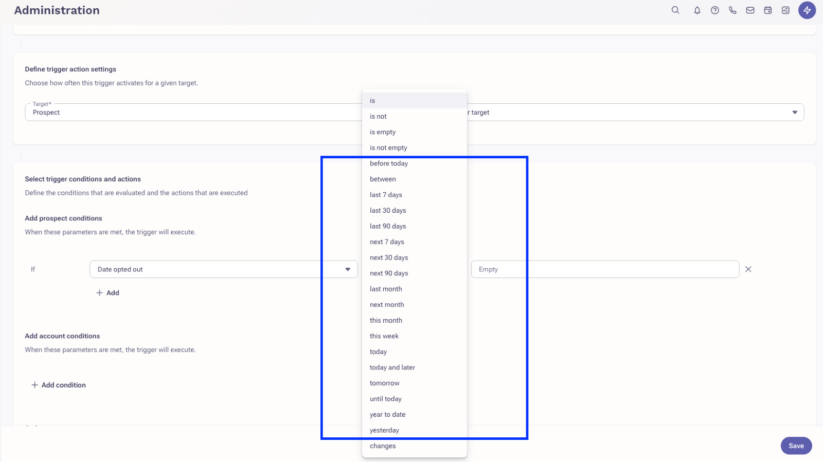 Utilize new flexible operators when defining conditions for date, string, and picklist fields.