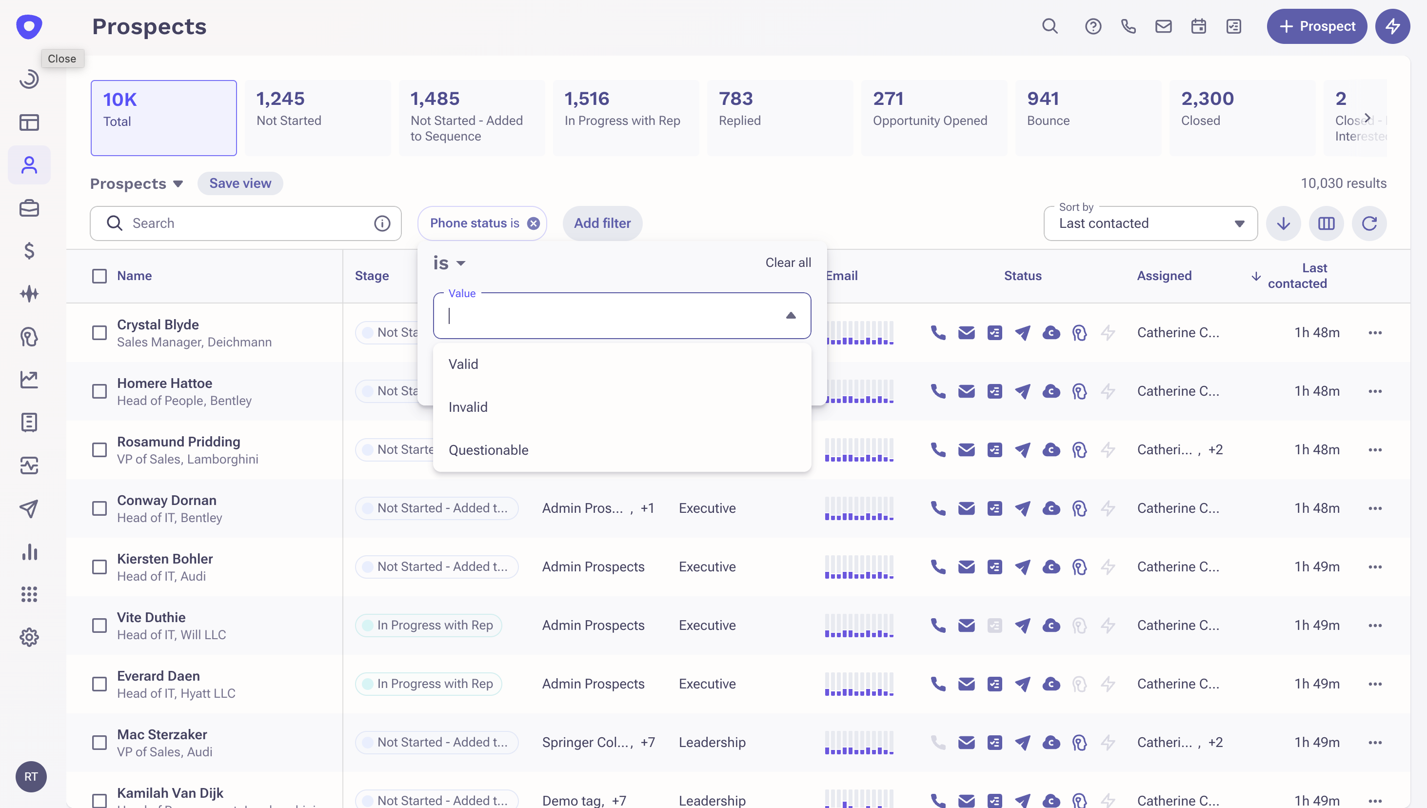 - Prospect count is available as a filtering and sort option