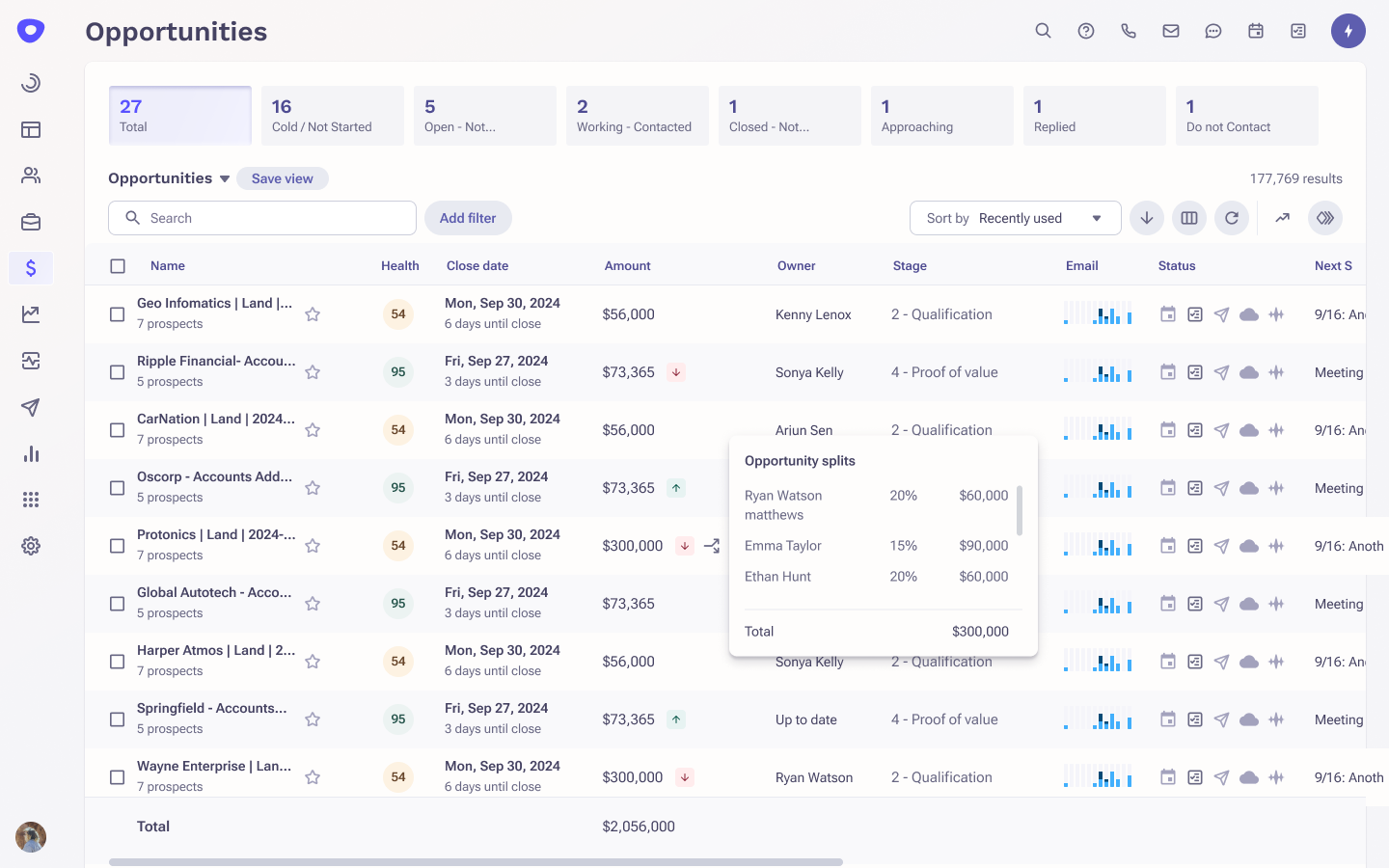 Quickly identify trends in deal health and see how many prospects are engaged.