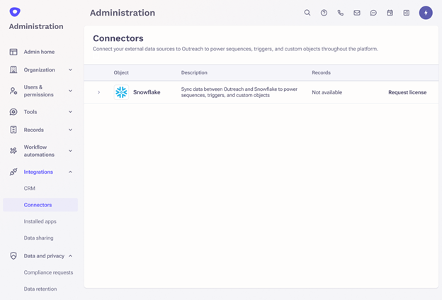 Bring external, third-party data from Snowflake into Outreach.