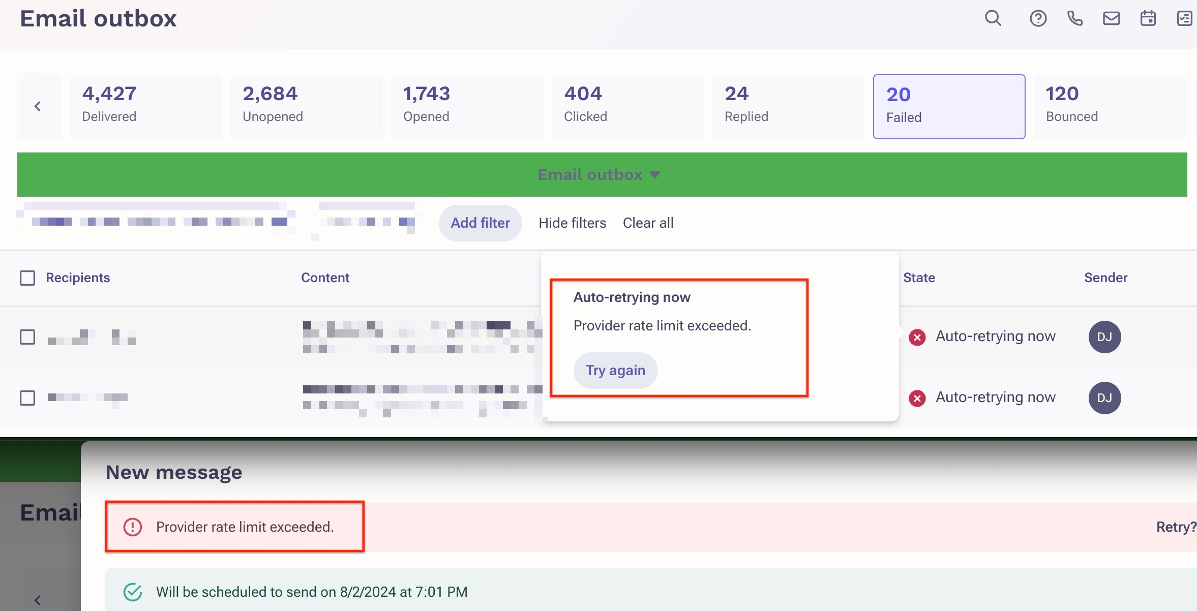 This message generally appears when the rate limit is met on the provider side: