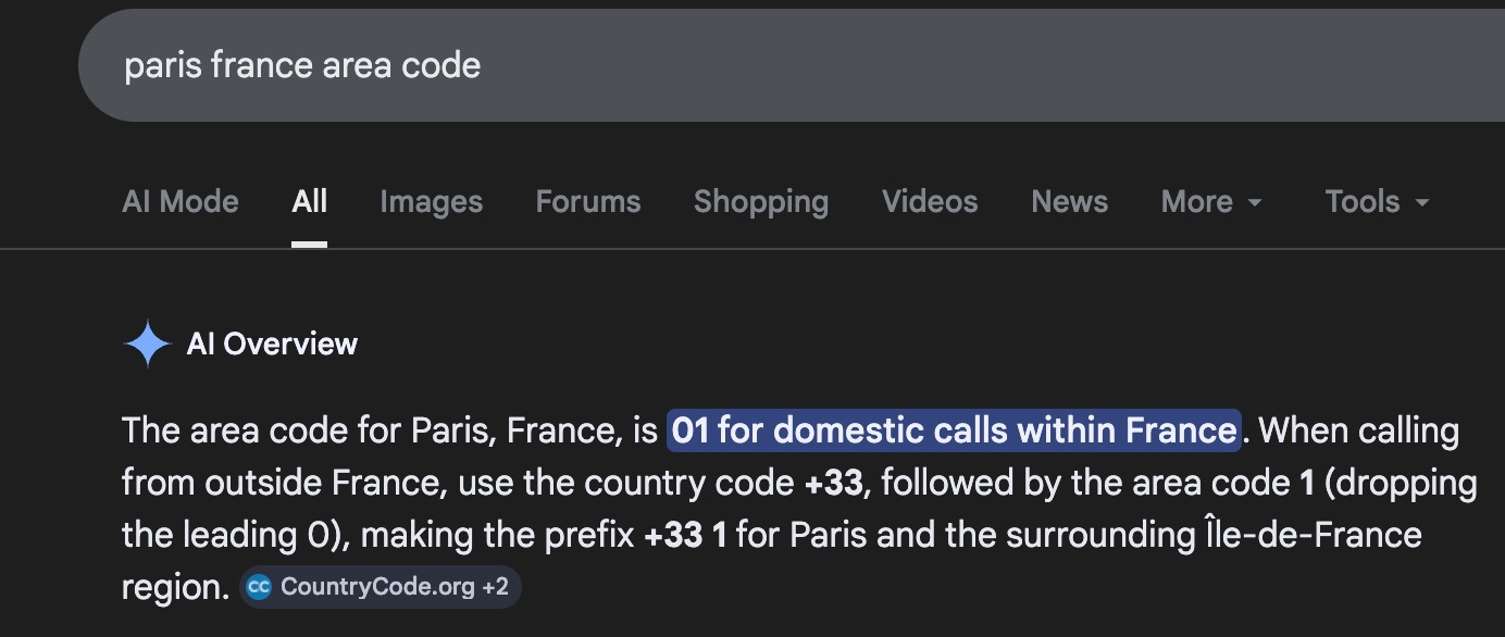 - Input the country and area code in the Search by digits or phrases field to narrow down the numbers for the correct region. To find the country and area code, simply search Google for this (ex. "paris france area code" = +33 1)