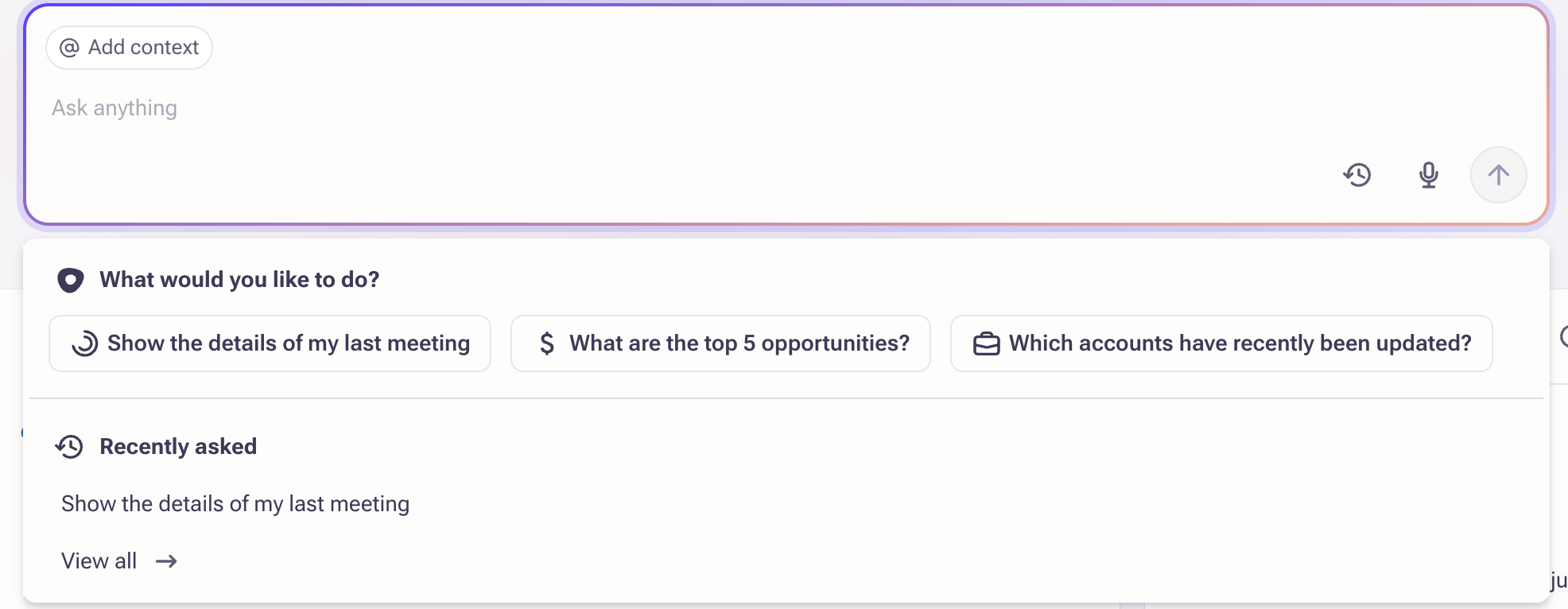 • Quickly understand what is happening across accounts, opportunities, or meetings